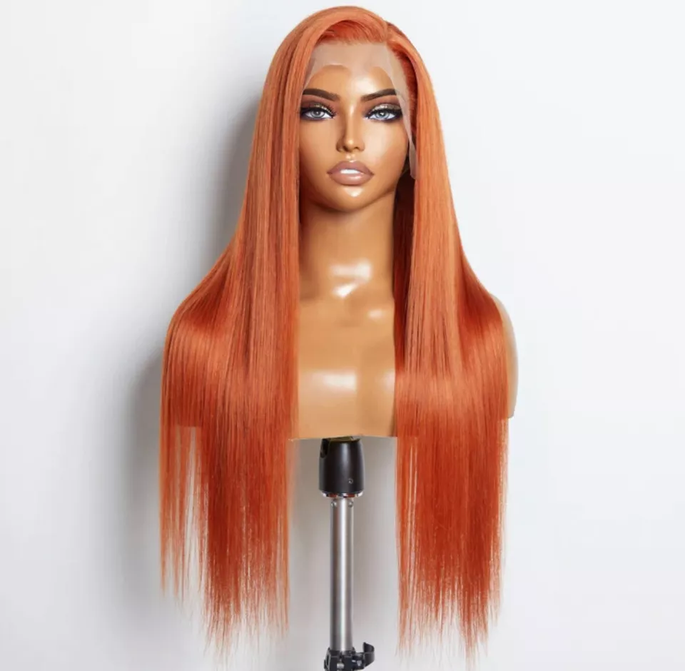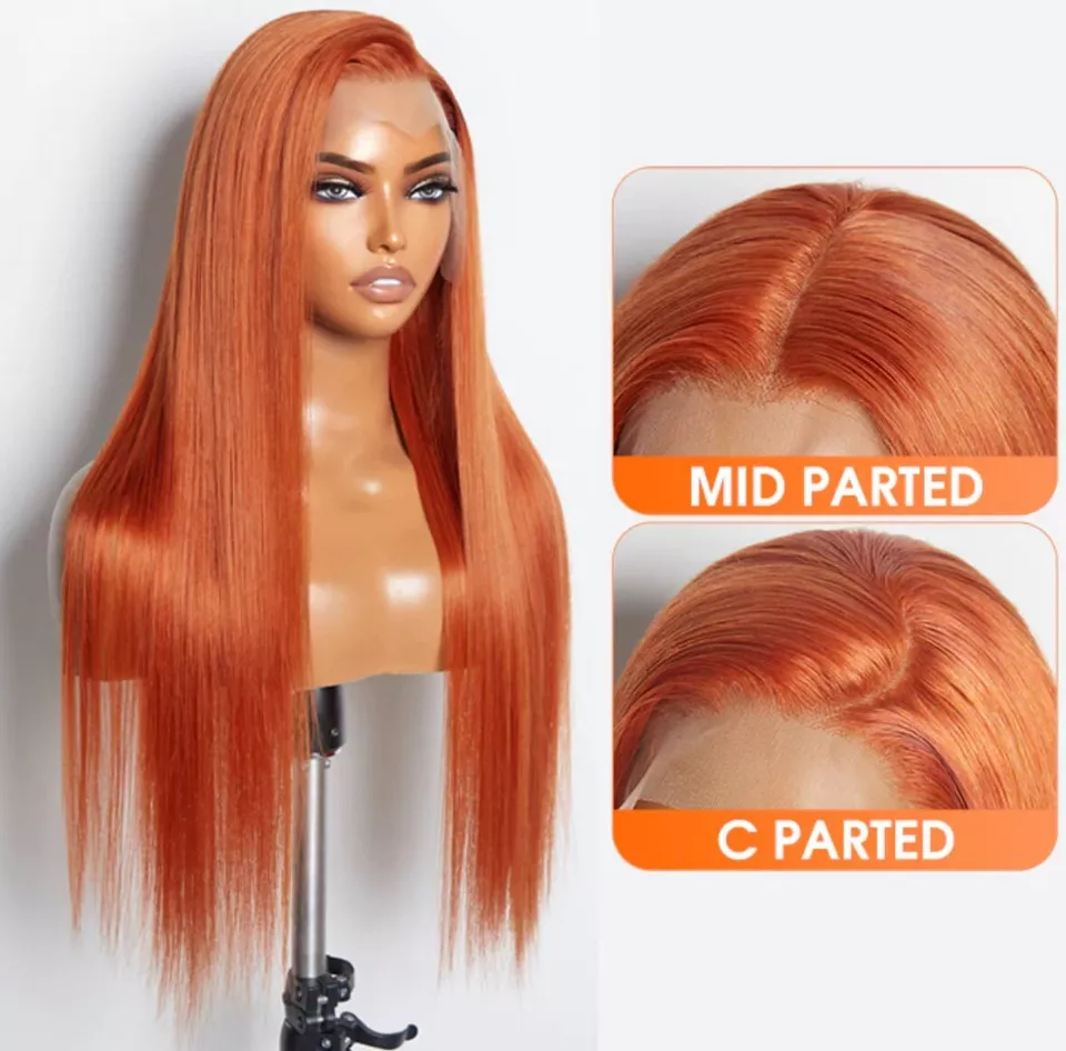 - Orange Ginger Lace Front Wig Human Hair Material】100% Unprocessed 10A Grade Brazilian Virgin Human Hair Lace Front Wig, Cut from Healthy Young Female Head Directly, Natural and Healthy, Smooth and Silky.