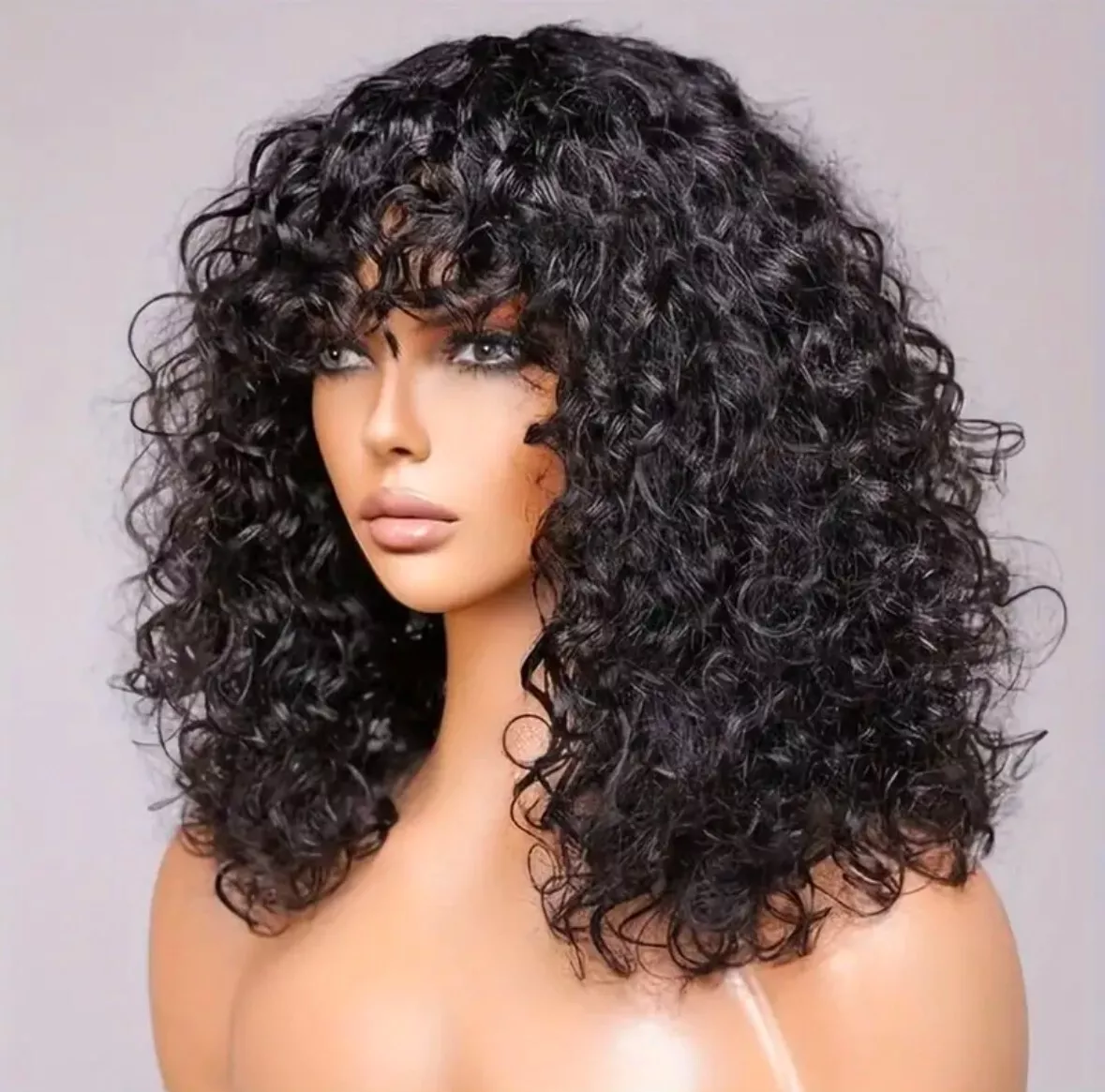 - Bang Hair Style: Curly wave human hair wigs with bangs, top full machine made wig with bangs, like real human hair skin, more comfortable and breathable. 180% Density, fuller and more attractive